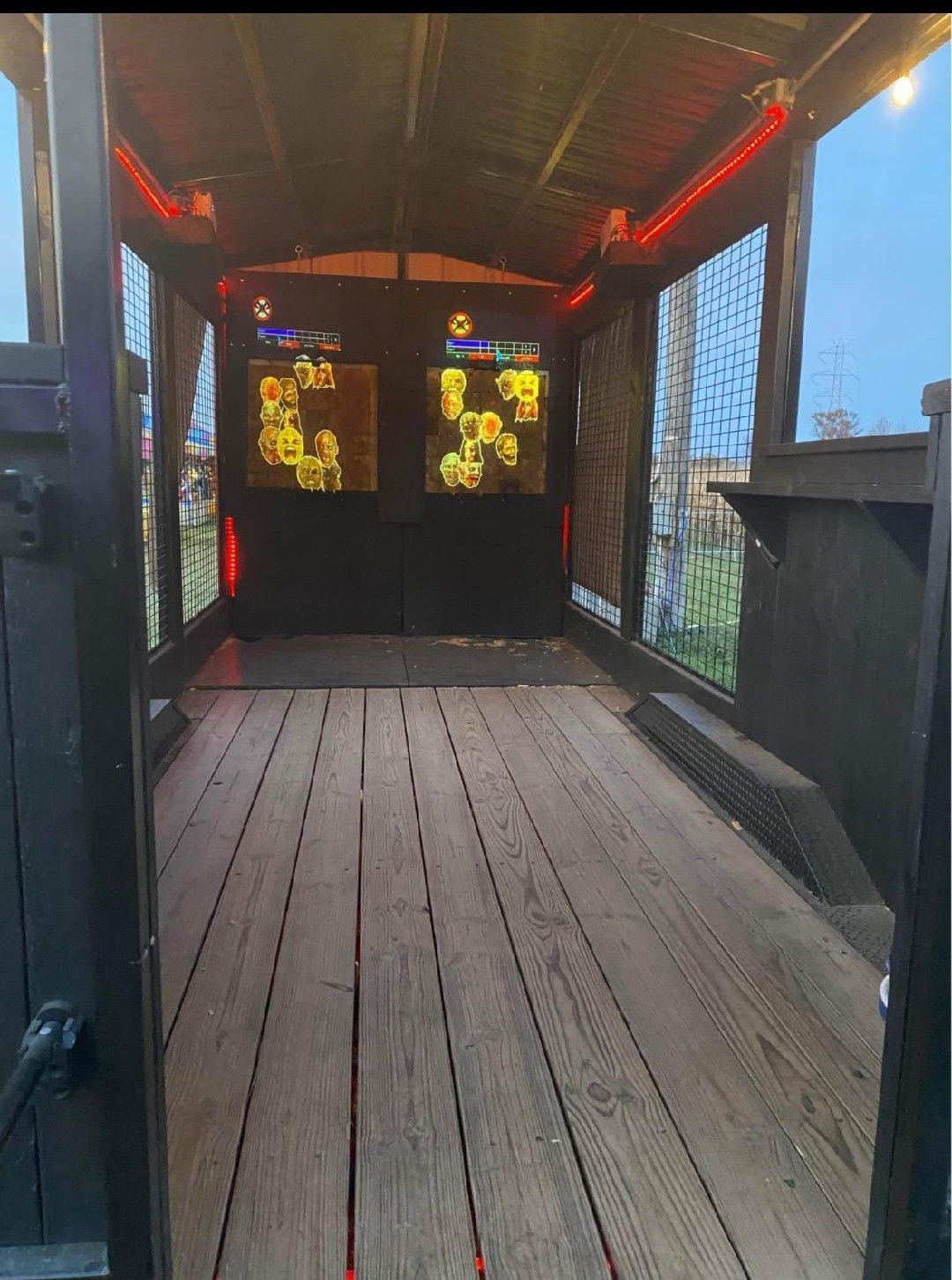 The War Wagon is not your average party entertainment — it's a fully mobile, Viking-inspired axe throwing trailer that turns any event into a legendary competition. Whether you're throwing down at a wedding, corporate event, festival, or backyard bash, The War Wagon brings the thrill of battle straight to your door. With expertly designed lanes, professional-grade axes, and safety-focused staff, you and your guests can channel your inner berserker with every toss.